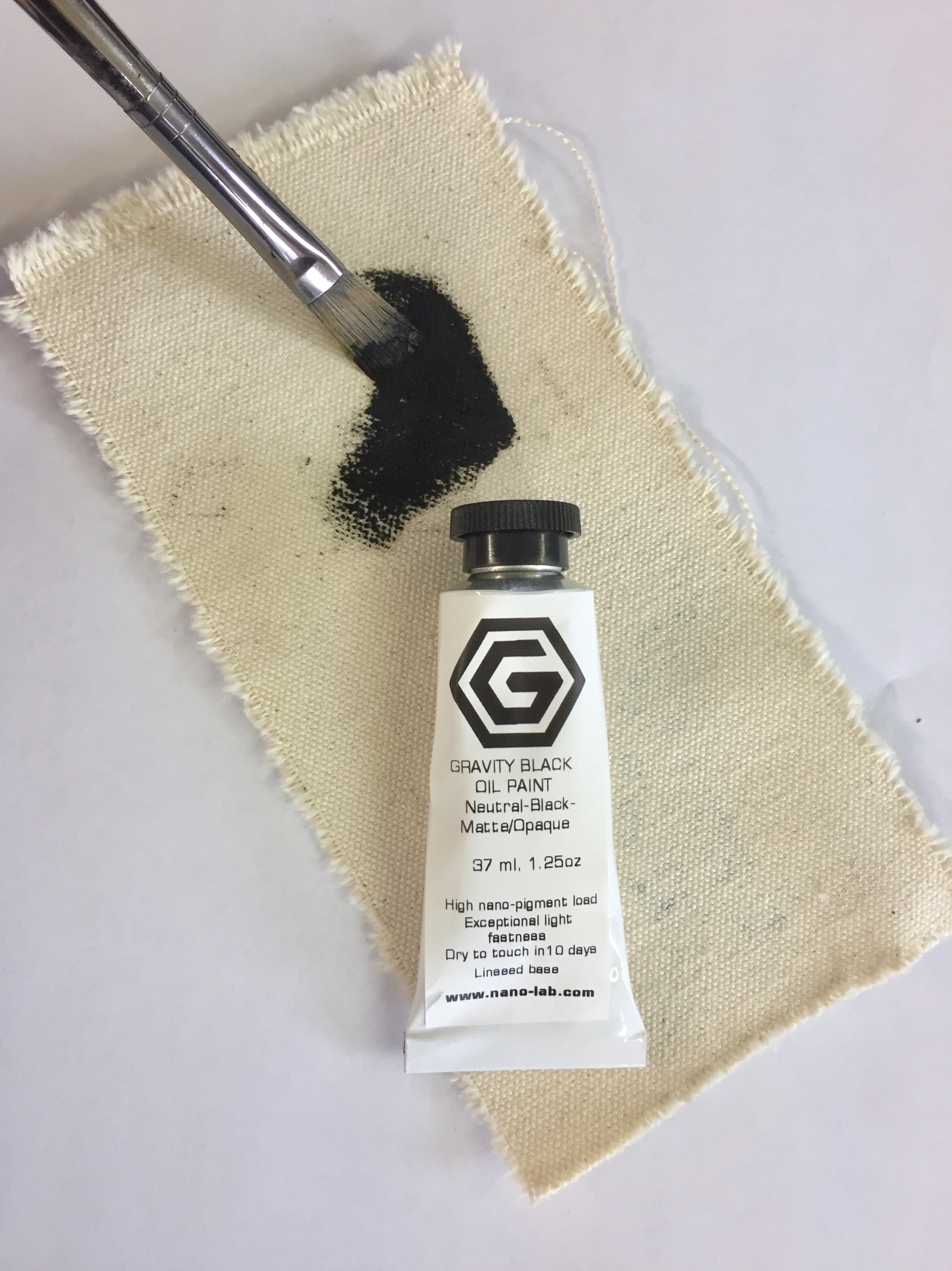 In our work with Singularity, we heard from many artists who were looking for an matte black oil paint that outperforms others in the marketplace. Gravity Black is the result, it uses the same pigment as Singularity, but in a base compatible with other oil paints. Gravity Black is a premium, highly matte black oil paint, formulated with a traditional linseed base, but with NanoLab's nanotechnology based fillers/pigments. These are finer than any other oil paint on the market, all the same size, and treated to be oil compatible. Gravity is the darkest matte paint available anywhere. GravityTM Black, What is it? Gravity Black is a matte black oil paint, exceptional for its lack of hue, and its low angle performance. Gravity Black is formulated with carbon nanotubes and other carbons in a linseed base. A cure accelerator is added to enable it to be dry-to the-touch in ~1 week. Gravity Black is extremely light fast- as a stable, inorganic nanostructure, it will not degrade. |
