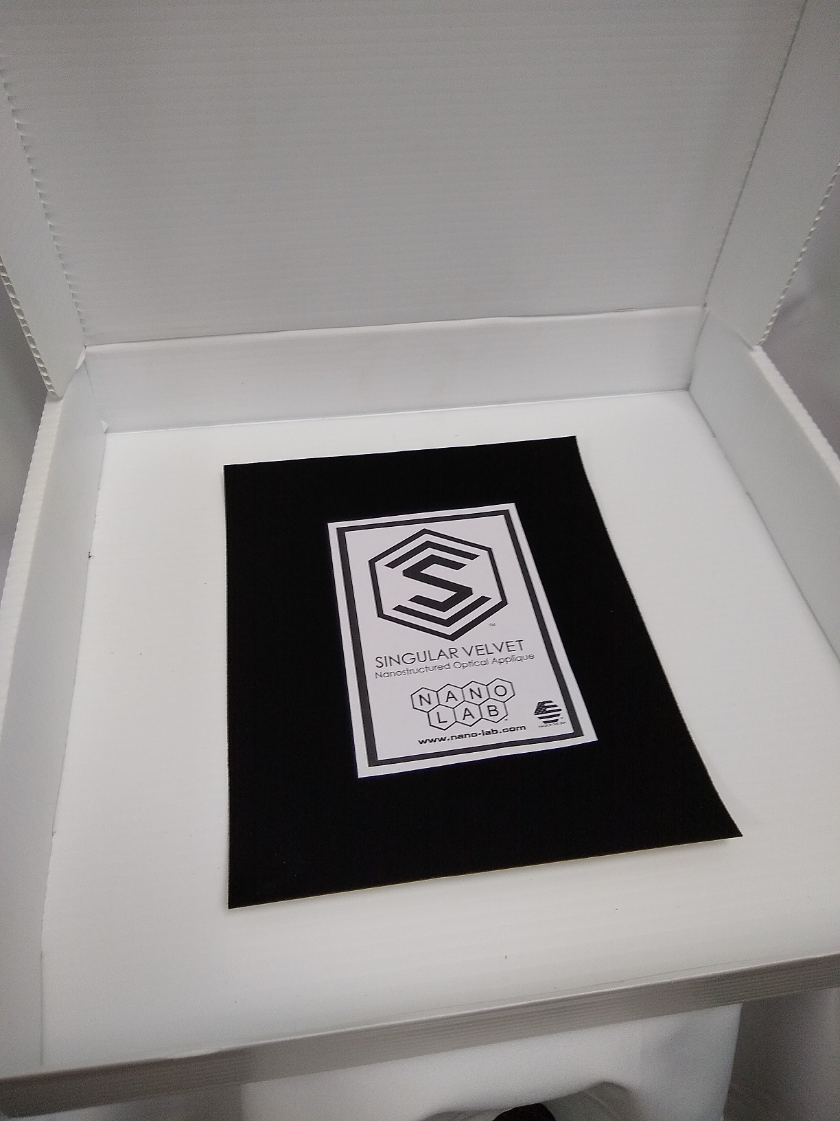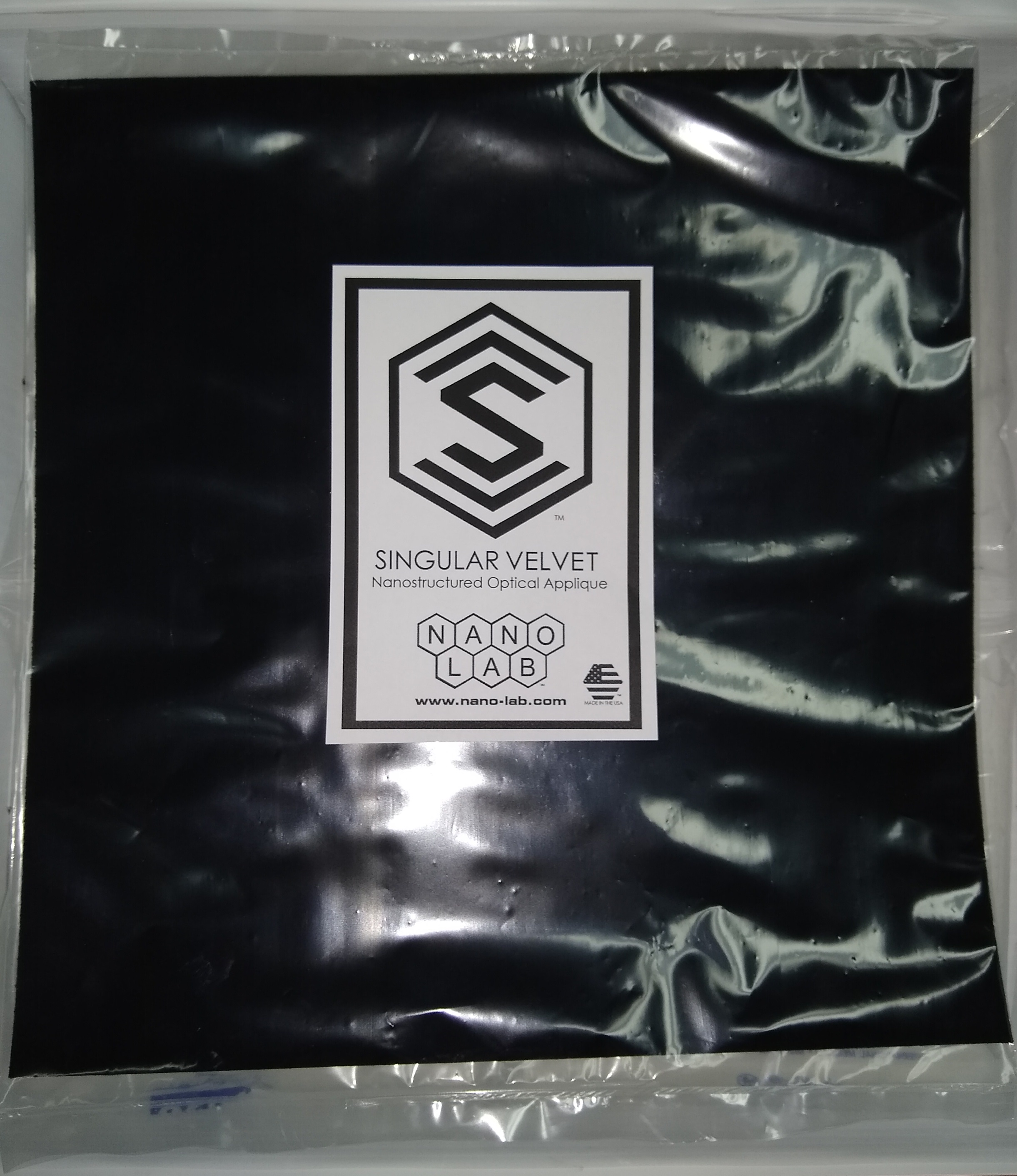 Singularity LT is a sprayable, low temperature activating formulation of Singularity, suited to application on canvas and many textiles, polymers, and wood. It is activated by heating to ~100C (212F), which can be accomplished with a hair dryer or paint stripper. It creates a coating that will absorb 98.75% of visible light incident upon it. We recommend that customers consult with NanoLab personnel before working with the paint to ensure good results and safe practices. Pricing does not include ground hazmat shipping to the continental United States. Contact us for international orders. .Coverage ~20 cm 2 (~1.5"x 1.5") As of October 15, 2021, all Singularity Black Low Temp products will be a 2x concentrated strength, giving the customer more area coverage than previously offered with the 1x strength Over the past year, Nanolab, Inc has worked to engineer and improve their pioneer product, Singularity Black Low Temperature Optical Paint. We believe offering the 2x strength will benefit our customers while achieving the low reflectance they have come to expect with our coating but using less paint. If you want to work in the older 1x strength after October 15th, you will need to dilute this in a 50:50 ratio with THF solvent. AS OF JANUARY 2026, NANOLAB HAS DISCONTINUED THE 20ML SAMPLE; PLEASE SEE OUR OTHER SIZE OFFERINGS On Safety: When Singularity is sprayed through an air brush, the aerosolized particles contain the polymeric binder, the carbon nanotubes and the fugitive solvent. These polymer-bound particles should not pose a health risk, but caution is warranted with any new material. Droplet sizes we have measured are typically larger than 5 microns, but other sprayers may differ in aerosolization. A respirators with a National Institute for Occupational Safety and Health (NIOSH) rating of P95 or greater have been shown to prevent the inhalation of CNTs under normal breathing conditions, and is mandatory safety equipment. The properties of nanotubes are not yet well understood, so use caution. PLEASE NOTE : Due to the special packaging required to ship flammable liquids, we do not accept returns of Singularity Black LT. Please discuss with NanoLab if there is a concern about shipping. Terms & Conditions: We encourage respectful, collaborative relationships between NanoLab and our Customers. Customers agree not to repackage or resell any NanoLab Products. We want to celebrate your achievements. By purchasing NanoLab products, customers agree to credit NanoLab as a supplier, in both technical articles and works of art, wherever appropriate and feasible. Customers agree that NanoLab may also release this information. Should secrecy be important to a particular application, contact us to put a nondisclosure agreement in place. |